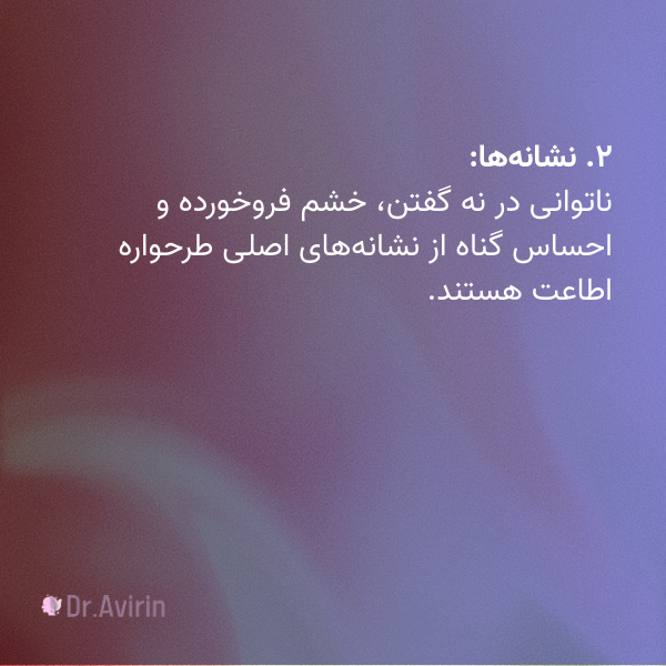 روانشناسی بالینی، طرحواره اطاعت را یک الگوی عمیق شناختی–هیجانی میداند که در موقعیتهای بینفردی فعال میشود. این طرحواره در شرایط تعارض، نابرابری قدرت یا احتمال طرد، بیشترین شدت را نشان میدهد. فرد در این حالت، بقای رابطه را بر سلامت روان خود ترجیح میدهد.