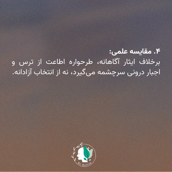 شناخت این تفاوت به فرد کمک میکند بین فداکاری آگاهانه و خودفراموشی آسیبزا تمایز قائل شود. این تمایز پایهی درمان طرحواره اطاعت را شکل میدهد.